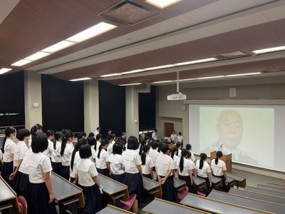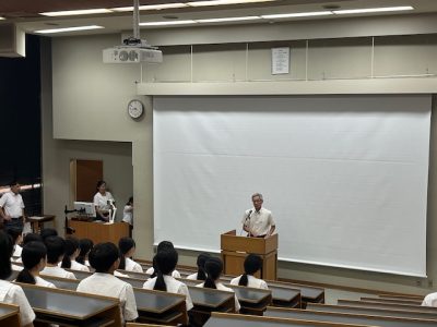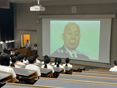 皆さん、改めて登下校の礼を意識しましょう。塔を仰ぎ見て一礼をし、校祖公江喜市郎先生の、塔に込められた思い、即ち、理想や感謝の念というものを思い起こしてほしいと思います。