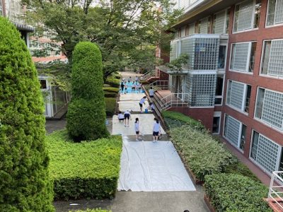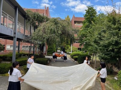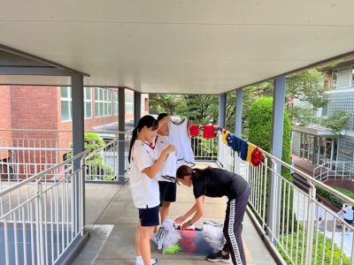 大量のぞうきんやランニング、帽子などを洗って干してくれたり、シートを掃いて拭いてくれたり、重い荷物を運んでくれたりとか、皆の協力で片付けができました。ありがとうございました。素晴らしい体育大会を支えている原点だなあとも感じました。