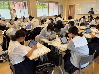 9月10日(水)に、武庫川女子大学経営学部の谷口先生をお迎えし、前期の振り返りと後期に向けた活動について学びました。今回のテーマは「共感力」です。社会課題や人々の思いに寄り添い、相手を理解する姿勢の大切さについて、講義とワークショップを通して考えました。生徒たちは映画やドラマの一場面を見て、「なぜ共感できるのか」「なぜ心が動いたのか」を話し合い、自分自身の価値観を振り返りました。