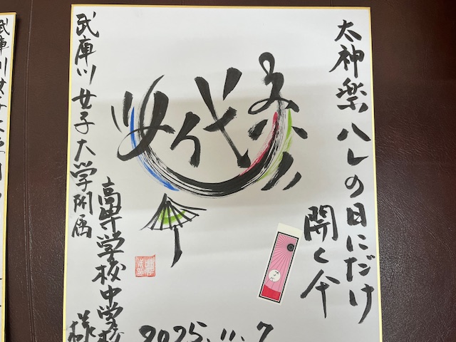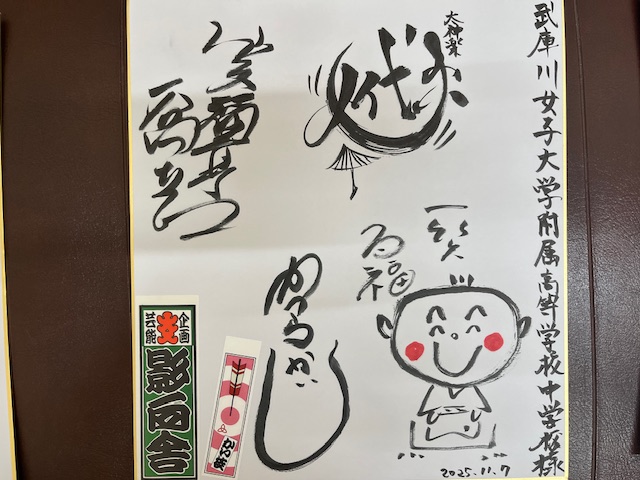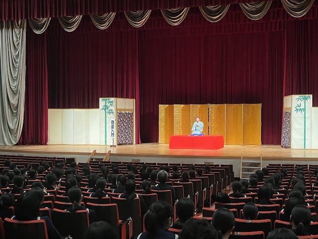11月7日(金)の午後から武庫川女子大学中央キャンパス・公江記念講堂に移動し、芸術鑑賞会を行いました。今年は「落語」を鑑賞し、古典芸能の魅力に触れました。
