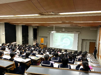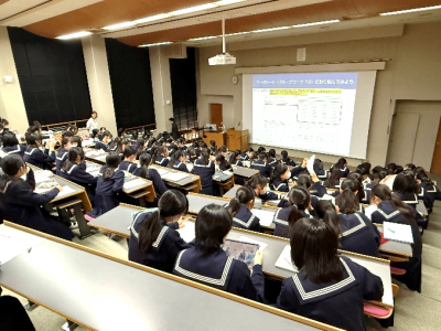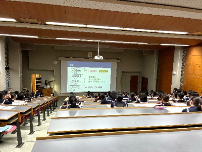 「興味・関心から学問や分野へ ~文理・科目選択について~」をテーマとした講演を行いました。自分の興味や関心を深めることが将来の進路選択につながると強調され、分野を知ることで、志望校や学部の方向性が見つかる、高校で学ぶ科目に力を入れるポイントがわかるといったメリットがあることを具体例を交えて説明してくださいました。