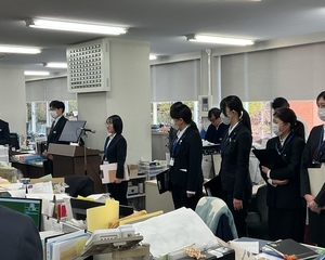 短期間でしたが参加実習生は、実際の授業や学校生活の様子を見学し、生徒との関わりや教員の指導のあり方について、熱心に学ぶ姿が見うけられました。職員朝礼で実習生代表から、これまでの実習への感謝と、将来教員として成長していきたいという思いを込めたお礼の挨拶がありました。