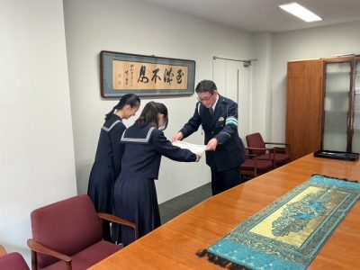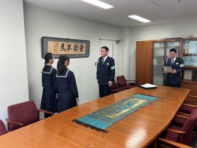本校校長室で、兵庫県警察より表彰を受けました。
