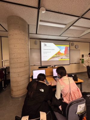 ダグラス・カレッジのコンピューターサイエンスの授業では、学生が一から作ったゲームを実際にプレイさせていただきました。普段あまりゲームをしないので操作が難しかったですが、みんな高得点を記録していてすごいと思いました。