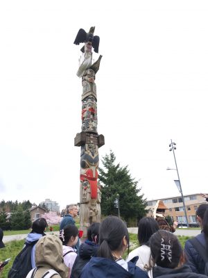 お昼はトーテムポールの前で取り、先住民文化についてのお話を聞きました。自然とともに生きる考え方や価値観に触れ、「自然・文化・人のつながり」を実感しました。