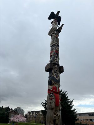 本日は、朝からUniversity of British Columbia(UBC)に集合し、活動を行いました。まず、UBC Forestを歩きながら自然について学びました。特に印象に残っているのは、レッドシダーの木です。レッドシダーは内部が赤いことから、その名前がついたと知り、とても興味深く感じました。また、先住民の方からお話を聞く機会があり、これまでカナダで学んできた歴史や文化についての理解が深まり、それぞれの学びがつながったと感じました。さらに、UBCで学んでいる学生の方から研究内容について教えていただき、大学ではどのようなことを学んでいるのかを具体的に知ることができました。今回して、カナダについての理解がより一層深まり、とても充実した一日となりました。