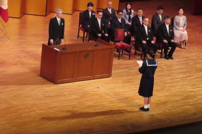 在校生代表の歓迎のあいさつ、新入生代表あいさつと続き
