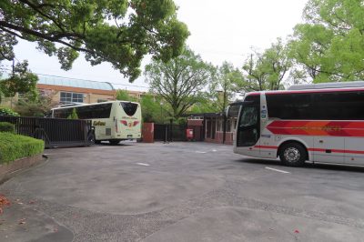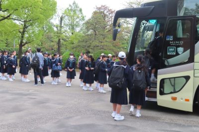 バスで中1は校祖公江喜市郎先生の墓前参拝、甲山森林公園へ