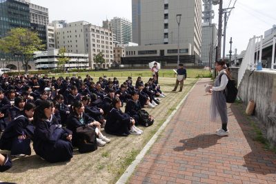この校外学習は、高校1年の時の探究活動の中で生徒たち自身が企画したものです。行き先についてさまざまな案が出され、発表会でのプレゼンテーションを経て、そのうちの一案が採用されました。