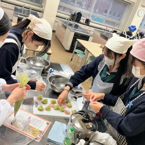 2025年12月19日 / 最終更新日 : 2025年12月19日 三木 文化部 家政部~調理実習 クリスマス~ 12月17日、家政部では調理実習を行いました。 今回のメニューはクリスマスをイメージした「トナカイ肉巻きおにぎり」と「マッシュポテトのクリスマスツリー」です。 おにぎりチームは、ご飯にお肉を巻く人、フライパンで焼く […]